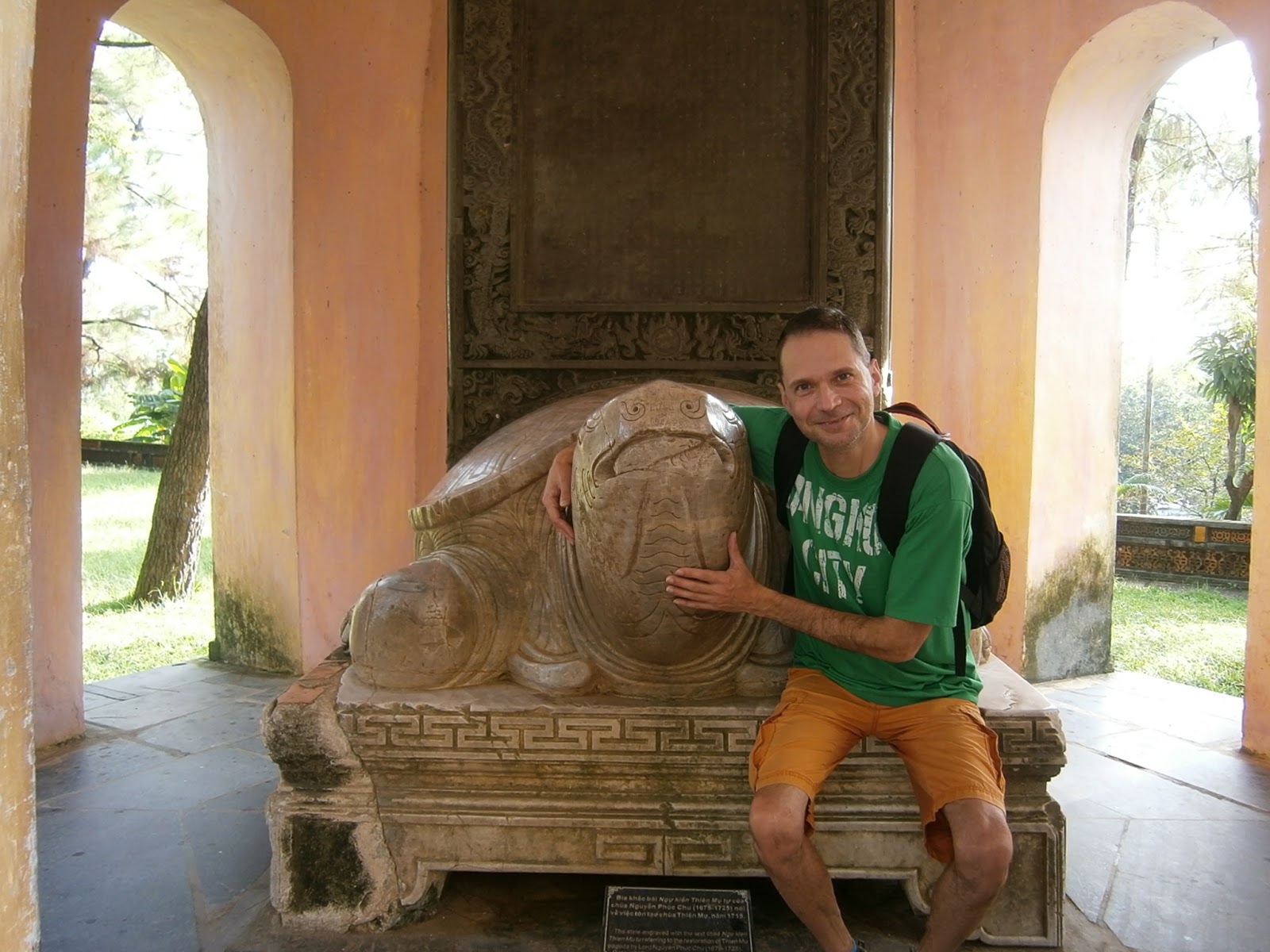 Ebéd után a város másik végén található császári síremlékekhez mentünk. Nagyon jópofa történeteket hallottunk az uralkodóikról, a végén már ismerősként köszöntöttük őket a fotókon. A mi kedvencünk Minh Mang lett… Őt a mai napig nagy tisztelet övezi, nem véletlenül építettek neki egy 150 hektáros sírkertet. A poén az, hogy senki sem tudja, hogy valójában hol van a teste eltemetve.
